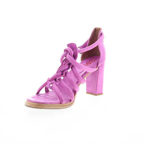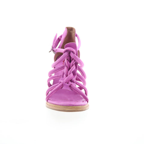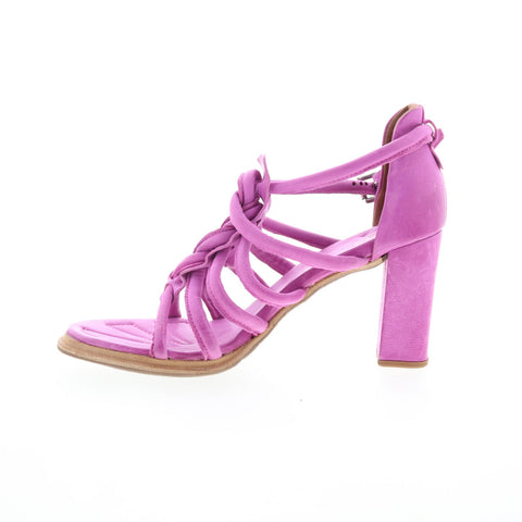 A.S. 98 Boone Womens Purple Leather Hook & Loop Heeled Sandals Shoes