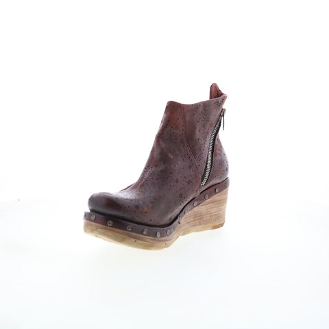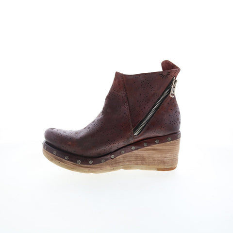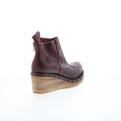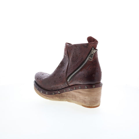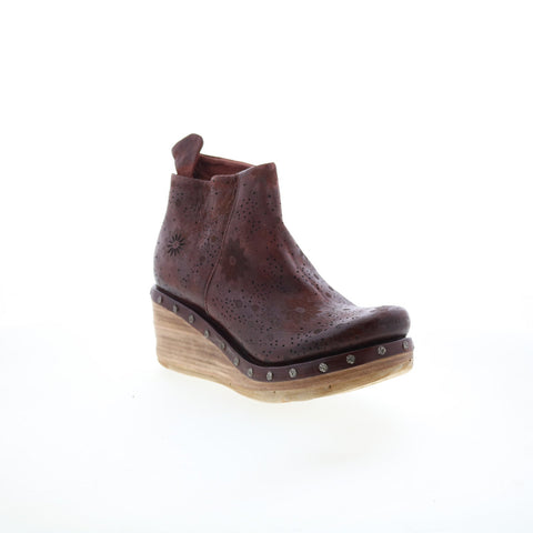 A.S. 98 Savina Floral Womens Brown Leather Zipper Casual Dress Boots