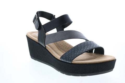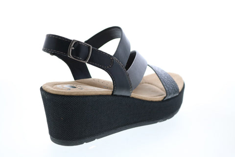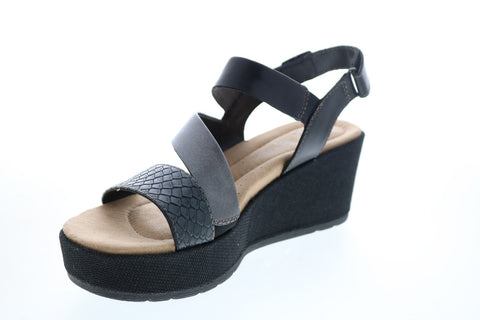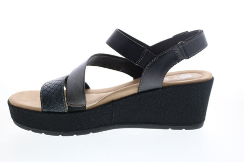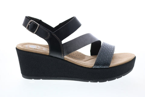 Earth Origins Maxine Womens Black Suede Strap Wedges Heels Shoes