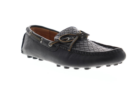 Frye Russel Woven 82213 Mens Black Leather Slip On Casual Loafers Shoes