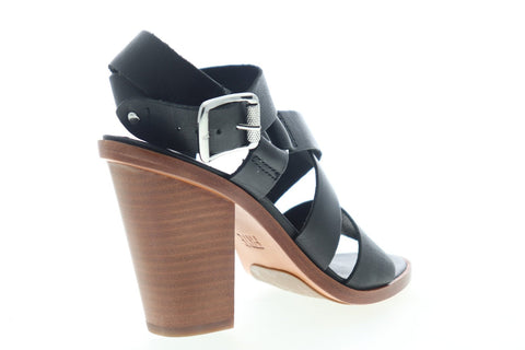 Frye Sara Harness Sandal 70182 Womens Black Leather Strap Heels Pumps Shoes