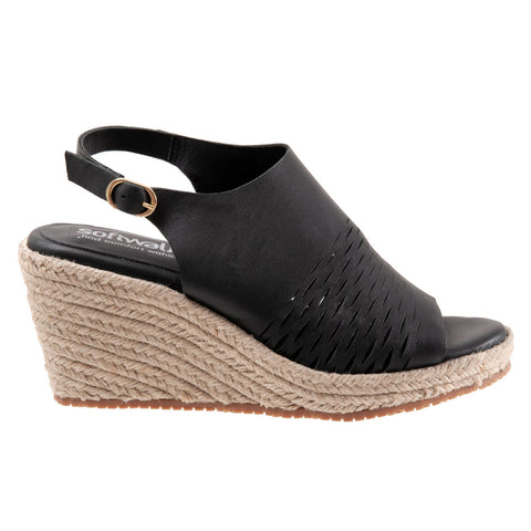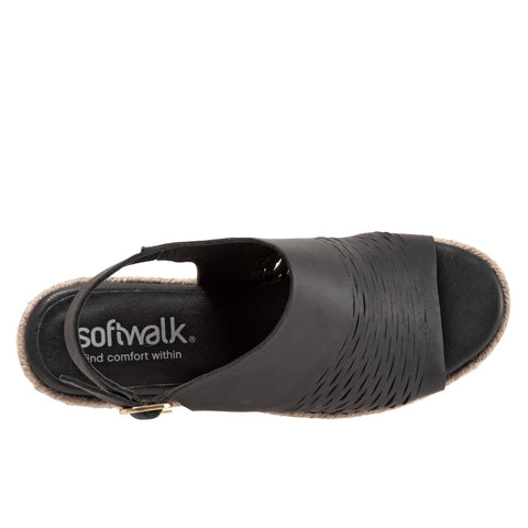 Softwalk Hixson S2207-001 Womens Black Leather Wedges Sandals Shoes