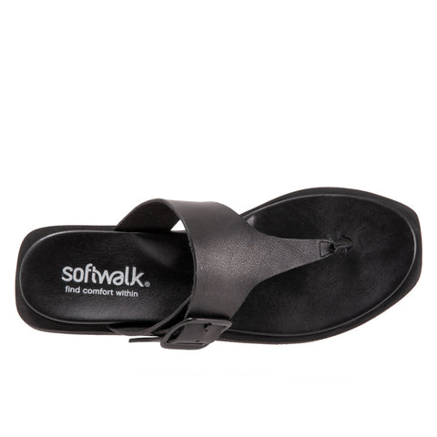 Softwalk Kisi S2210-001 Womens Black Wide Leather Thong Sandals Shoes