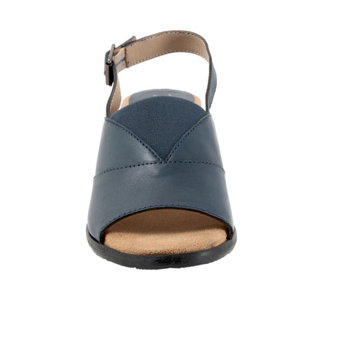 Trotters Mavis T2206-400 Womens Blue Wide Leather Heeled Sandals Shoes